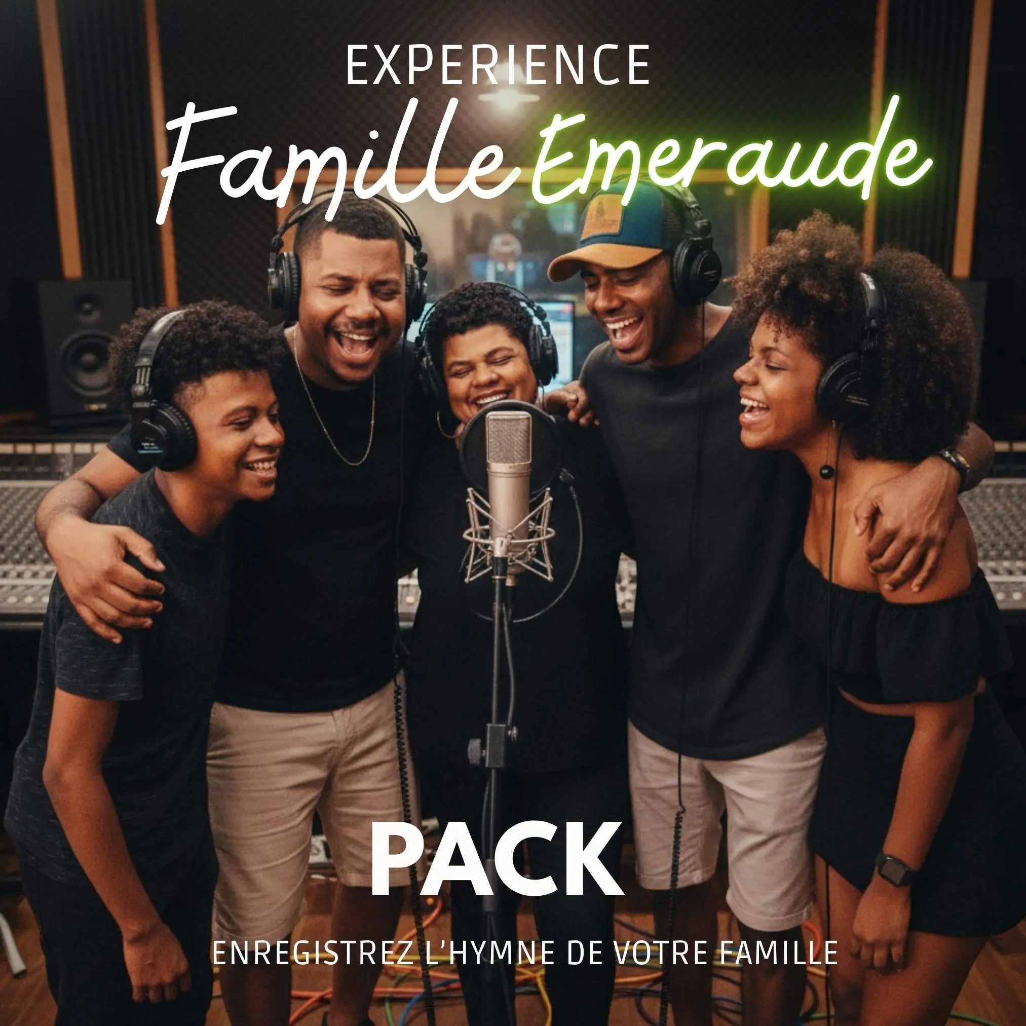 Le Pack Famille Émeraude offre une expérience studio famille intermédiaire complète, fun et enrichissante, idéale pour progresser ensemble et repartir avec un souvenir audio professionnel.
